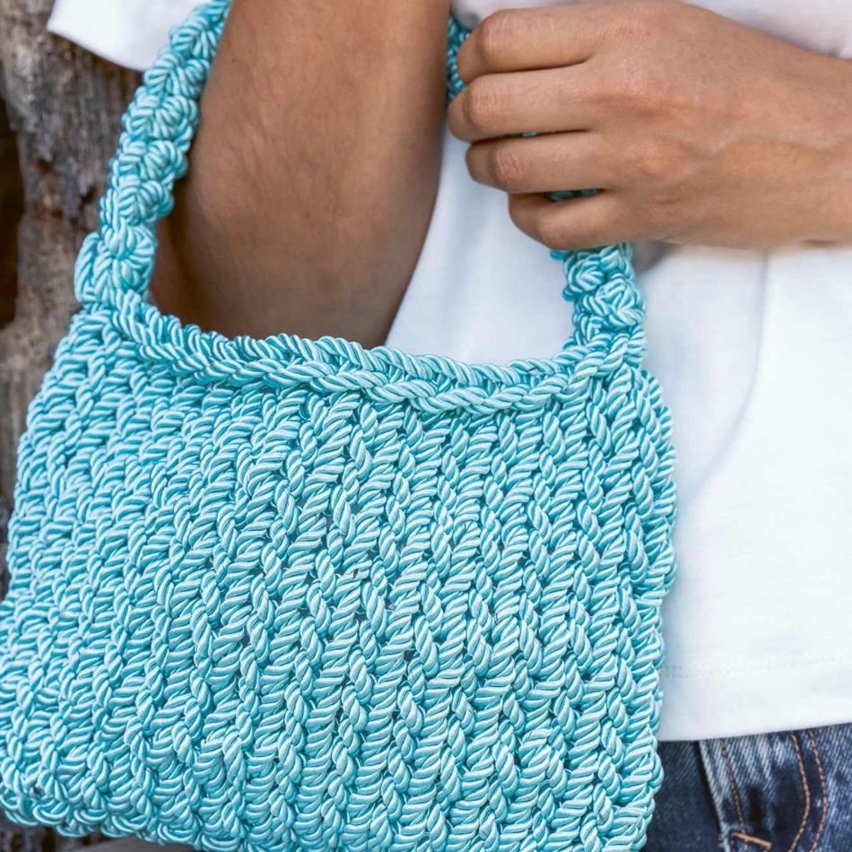 La matassa è di 400gr/40m e si può realizzare l'intera borsa.